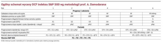 Chcąc przybliżyć koncepcję wyceny indeksu S&P 500, jako punkt wyjścia przyjmiemy metodologię opisaną cztery miesiące temu przez renomowanego profesora Aswatha Damodarana. Pokażemy też, jaki wpływ na rezultaty miałyby różne, również daleko idące, modyfikacje tego podejścia.