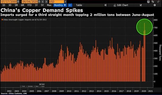 „Miesięczny import jest niższy, ponieważ okno arbitrażu zostało zamknięte i jest to tradycyjnie słabszy sezon popytu w III kwartale" - powiedział He Tianyu, analityk popytu na miedź w Chinach z CRU Group. „Ale sierpniowy import jest nadal wyższy rok do roku, a liczba bazowa z zeszłego miesiąca jest już dość wysoka. Jeśli okno arbitrażu otworzy się ponownie, import może ponownie wzrosnąć. "