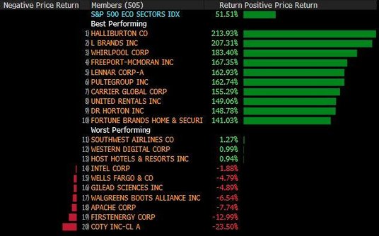 Również od 23 marca tylko 7 spółek z indeksu S&P 500 odnotowało straty. Tymczasem S&P 500 zamknął się we wtorek na rekordowo wysokim poziomie, odbijając się po ogromnych stratach wywołanych pandemią koronawirusa i stanowiąc ukoronowanie jednego z największych skoków w historii indeksu. Od osiągnięcia pandemicznego minimum 23 marca indeks wzrósł o około 55 proc. To sprawia, że ??rynek bessy, który rozpoczął się pod koniec lutego, jest najkrótszym w historii S&P 500. Według danych Refinitiv od czasu dołka z 23 marca S&P odnotował największy wzrost w ciągu 103 dni od 87 lat. Biliony dolarów bodźców fiskalnych i monetarnych sprawiły, że Wall Street zaroiło się od gotówki, popychając inwestorów poszukujących zysków do akcji. Amazon i inne akcje spółek technologicznych o wysokim wzroście są postrzegane jako najbardziej wiarygodne do wyjścia z kryzysu.