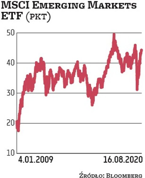 Z umiarkowanym optymizmem mieliśmy do czynienia na rynkach wschodzących. MSCI Emerging Markets (ETF) rósł o 1 proc. i wychodząc nieco powyżej 44 punktów. Jednak lokalnego szczytu z pierwszych dni sierpnia nie udało się sforsować. Zwyżkę indeksu hamował między innymi tracący niemal 1 proc. Shanghai Composite. Na plus wyróżniał się za to moskiewski RTS, zwyżkując o ponad 4 proc.