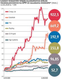 – Notowania spółek w biznesie technologicznym są w trendzie wzrostowym od kilku lat, choć zdarzały się głębsze tąpnięcia, jak to marcowe związane z pandemią. Obecnie ceny są już wysokie i w wielu przypadkach dyskontują dość odległą przyszłość, co jest obarczone dużą niepewnością, a wyznaczenie punktu zwrotnego w trendzie jest bardzo trudne – komentuje Dominik Niszcz, analityk Trigon DM. Dodaje jednak, że nawet jeśli przejściowo wyceny giełdowe będą wyższe niż rzeczywista wartość, nie można wykluczyć, że krótkoterminowo nastawieni inwestorzy będą w stanie zarobić na dalszych zwyżkach. Istotny będzie dalszy napływ inwestorów i ich kapitału – ciągle chodzi tu o inwestycje giełdowe jako alternatywę dla depozytów.