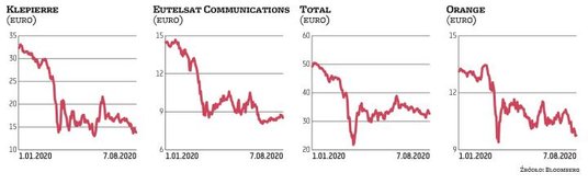 Na dywidendę, mimo że mniejszą, mogą również liczyć akcjonariusze notowanego na paryskiej giełdzie Orange. Branża telekomunikacyjna zniosła skutki pandemii lepiej niż inne sektory, ponieważ ludzie polegali na infrastrukturze komunikacyjnej, pracując z domu, grając w gry czy oglądając filmy. Dzięki temu w II kwartale przychody spółki spadły rok do roku tylko o 0,4 proc., do 10,4 mld euro. Zarząd podjął jednak decyzję o zmniejszeniu dywidendy wypłacanej z zysku za 2019 r. o 30 proc., do 0,5 euro. Przy aktualnym kursie daje to stopę dywidendy na poziomie blisko 5 proc. Niemniej Stephane Richard, prezes Orange, uspokoił inwestorów, mówiąc, że spodziewa się powrotu do wypłaty 0,7 euro na akcję już w przyszłym roku.