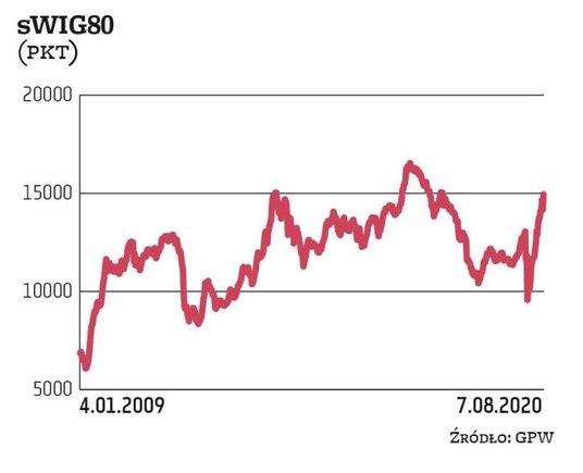 Po dość niepokojących wydarzeniach z ostatniego tygodnia lipca na warszawski parkiet powrócił umiarkowany optymizm, choć czwartkowa sesja znów przypomniała o obawach, szczególnie w segmencie małych i średnich firm. W trakcie pierwszych czterech sesji minionego tygodnia WIG20 zwyżkował o prawie 3 proc., powracając powyżej 1800 pkt, czyli poziomu, do którego indeks ten „przyzwyczaja" inwestorów już od początku czerwca. Na tle zachowania się wskaźnika rynków wschodzących zarówno w perspektywie ostatnich dni, jak i miesięcy WIG20 nie wygląda imponująco, najdelikatniej rzecz ujmując. Obrazu siły względnej nie poprawia też zbytnio spojrzenie na indeks naszych blue chips w ujęciu dolarowym. Najwyraźniej globalny kapitał szuka szczęścia gdzie indziej, a rodzimy jest w stanie jedynie podtrzymywać trend boczny i bronić rynek przed osuwaniem.