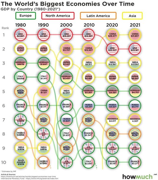 Z pierwszej dziesiątki 1980 roku w następ[nich latach wypadły najpierw Meksyk, potem Włochy. Ten pierwszy kraj zastąpiły Chiny, drugi – Indonezja. Być może czeka nas kolejna zmiana. Gospodarka Korei Południowej spadła o 3,3 procent rok do roku w drugim kwartale, ale według Organizacji Współpracy Gospodarczej i Rozwoju tempo wzrostu PKB w drugim kwartale tego kraju było drugim najwyższym spośród 14 największych gospodarek. Chiny zajęły pierwsze miejsce, ponieważ ich gospodarka wzrosła w tym samym okresie o 11,5 proc. Tempo wzrostu PKB czwartej co do wielkości gospodarki azjatyckiej przewyższyło wiele krajów rozwiniętych, w tym Stany Zjednoczone, Niemcy, Francję, Włochy i Hiszpanię, w których ich gospodarka skurczyła się odpowiednio o 9,5%, 10,1%, 13,8%, 12,4% i 18,5 proc.