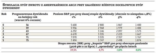 Oczywiście nie oznacza to wszakże, że stopa zwrotu z inwestycji na Wall Street jest na gwarantowanym poziomie owych 6 proc. Rzeczywisty zysk zależy od jeszcze jednego elementu – od wahań stopy dywidendy (ang. dividend yield), czyli tego, jak dużo lub mało rynek każe sobie płacić za przyszły strumień dywidend.