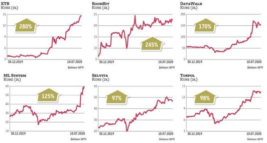 Na zainteresowanie inwestorów mogły w szczególności liczyć spółki, których sytuacja finansowa jest w mniejszym stopniu uzależniona od koniunktury gospodarczej lub które są beneficjentami szybko zmieniającego się otoczenia – czyli np. zmiany zwyczajów konsumentów czy wzrostu znaczenia e-commerce i rozrywki domowej. Tym można tłumaczyć niesłabnące zainteresowanie papierami producentów i dystrybutorów gier wideo.