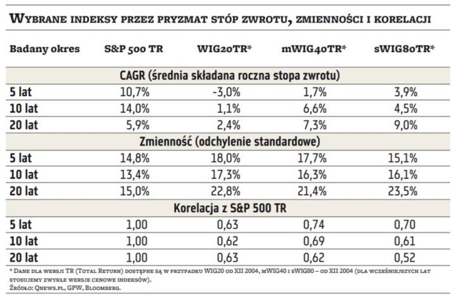 W ostatnich kilku miesiącach akcje polskich małych spółek okazują się mocniejsze niż amerykański S&P 500. A jak to wygląda na dłuższą metę? Przyglądamy się historycznym stopom zwrotu, zmienności i korelacjom.