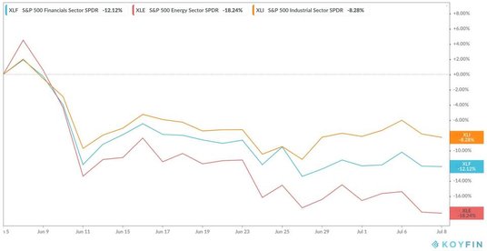 Spółki przemysłowe - spadek o 8 proc.; finansowe o 12 proc., energetyczne o 18 proc. To wynik ostatnich 30 dni w indeksie S&P 500, podczas których w górę szły spółki technologiczne.