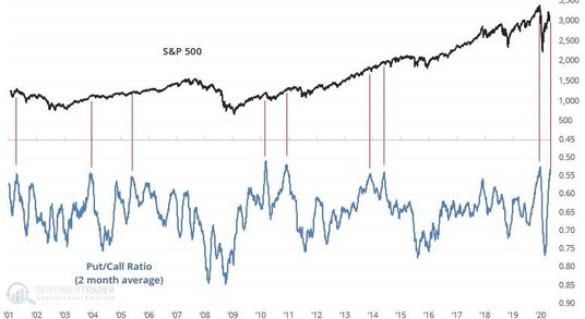 W poniedziałek współczynnik sprzedaży S&P 500 wynosił 0,56. Tak wysoka relacja Put/Call zdarzyła się w czasie ostatnich 20 lat kilka razy. Ostatni raz tak się stało, zanim akcje załamały się w lutym 2020 r. Wcześniej zwykle prowadziło to do wycofań i korekt na rynku akcji – zauważa Troy Bombardia, handlowiec i strateg. I takie jest zdanie wielu analityków: wszystkie znaki wskazują na korektę.