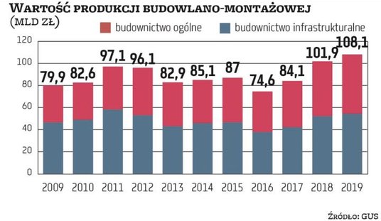Licząc po pięciu miesiącach, produkcja budowlano-montażowa była o 3,9 proc. wyższa rok do roku. 7,6-proc. wzrost odnotowały firmy zajmujące się budową obiektów inżynierii lądowej i wodnej. Kubaturówka osiągnęła 1,4-proc. wzrost, a roboty specjalistyczne 2,1-proc. Dla porównania po pięciu miesiącach 2019 r. produkcja budowlano-montażowa notowała wzrost rok do roku o 9,3 proc., a po pięciu miesiącach 2018 r. o 24 proc.