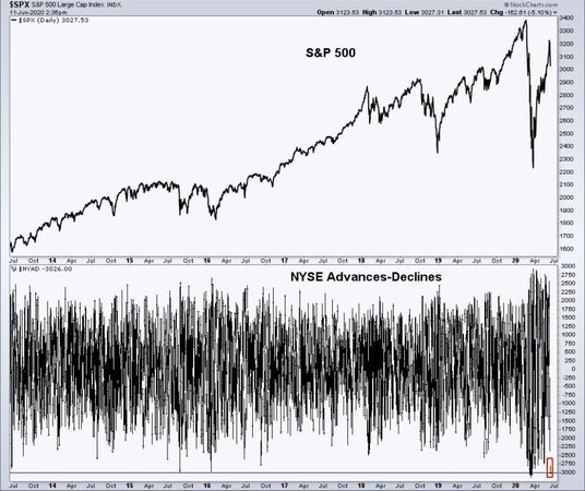 - Na rynku akcji amerykańskich nastroje są nadal bardzo pozytywne, co udowodnił wczorajszy wynik akcji amerykańskich spółek technologicznych, które odrobiły wcześniejsze straty i odnotowały mocną końcówkę w zwykłych godzinach obrotu, a w przedłużonej sesji dotarły do 10 000 punktów. Naszym zdaniem rynek może z łatwością kontynuować hossę, o ile narracja dotycząca ożywienia w kształcie litery V będzie się umacniać. Chcemy jednak podkreślić, że niewielka płynność na rynkach stanowi kluczowe ryzyko dla traderów, należy zatem ściśle stosować zasady zarządzania ryzykiem – pisał w środę Peter Garnry, dyrektor ds. strategii rynków akcji w Saxo Banku.