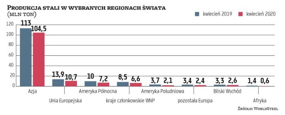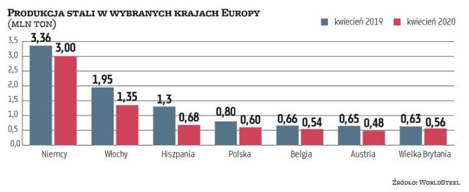 Także polscy analitycy nie przewidują szybkiego powrotu przemysłu stalowego do poziomu produkcji sprzed pandemii. – W najbliższych mie-siącach nie spodziewam się jeszcze odbicia, choć dynamika spadków produkcji w porównaniu z rokiem ubiegłym nie powinna być już tak duża jak w kwietniu. To będzie raczej powolny powrót hut do normalności. Świadczą o tym chociażby ostatnie decyzje firm z branży motoryzacyjnej, jak np. Volkswagena, który wznowił działalność fabryk, ale szybko wyłączył kilka linii produkcyjnych z uwagi na istotny spadek popytu na samochody – przewiduje Szkopek.