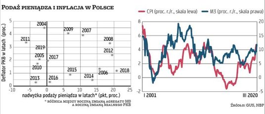 Inaczej jest w Polsce, gdzie QE po raz pierwszy zastosowano w trakcie obecnego kryzysu. Ostrzeżenia, że doprowadzi to do eksplozji inflacji, padają u nas nawet z ust szanowanych ekonomistów, o publicystach nie wspominając. „Jak wpompuje się do nieprzygotowanej na taki kryzys gospodarki dodatkowe 212 mld zł bez pokrycia, to czeka nas gigantyczna inflacja, przy której blednie obecna drożyzna" – pisała niedawno na łamach jednego z tygodników znana dziennikarka, laureatka wielu nagród za publicystykę ekonomiczną. Ze względu na to, że QE jest w naszych warunkach instrumentem nowym, obawy przed jego konsekwencjami są zrozumiałe. Zwykle jednak, co ten cytat dobrze pokazuje, pożywką dla nich są dwa nieporozumienia. Jednym jest utożsamianie ilościowego łagodzenia z drukowaniem pieniądza, drugim zaś założenie, że inflacja jest z ilością tego pieniądza ściśle powiązana.