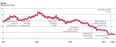 – Będąc ostrożnym, powinno się zacząć myśleć, co zrobić z Aliorem już teraz, póki jeszcze ma bufor kapitałowy i zanim wspieranie go stanie się trudniejsze. Jednak połączenie z Pekao oceniam jako problematyczne, bo PZU i PFR mają na walnym zgromadzeniu tego banku niecałe 33 proc. akcji, a potrzebują do zgody na fuzję 75 proc. głosów. Uzyskanie może być trudne, biorąc pod uwagę sytuację i wycenę Aliora. Przejmowanie go z portfelem kredytów, z którym wiąże się spore ryzyko, może nie być uzasadnione oczekiwanymi synergiami kosztowymi i mniejszościowi akcjonariusze Pekao mogliby się nie zgodzić na transakcję. Alior ma 56 mld zł kredytów, z czego 14 proc. ogółem to te zagrożone, a pokrycie rezerwami to tylko 40 proc. W dodatku bank jeszcze nie zawiązał rezerw ze względu na wpływ pandemii i to dopiero go czeka. Dlatego wycena Aliora wcale nie jest atrakcyjna i ewentualny zysk kapitałowy Pekao na transakcji mógłby zamienić się w stratę w razie oczekiwanego wzrostu odpisów w Aliorze – mówi Stolarski.