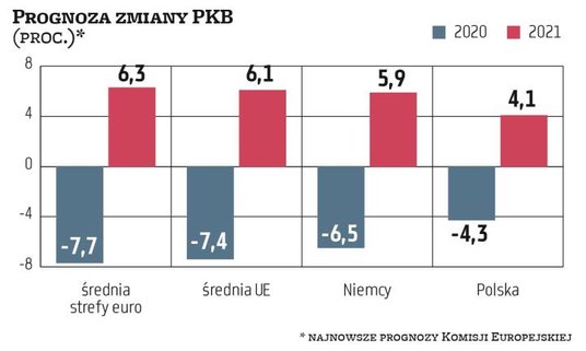 I choć S&P 500 to dość nietypowy przykład, bo ogromną wagę w tym indeksie mają takie spółki technologiczne, jak: Facebook, Google czy Amazon, (które nie są mocno dotknięte pandemią), i nie jest to wskaźnik giełdowy najlepiej odzwierciedlający sytuację w gospodarce, to także Dow Jones mocno odbił. Stracił w najgorszym momencie 37 proc., od dołka zyskał prawie 31 proc., tyle samo co S&P 500, ale odrobił mniejszą część strat niż ten indeks (52 proc. wobec 60 proc.). Eksperci zwracają uwagę, że ostatnio rynki akcji ignorowały to, co się dzieje w gospodarce, czyli fatalne dane np. z rynku pracy, konsumpcji czy prognoz PKB. Dow Jones ostatnio miał najlepsze dwa tygodnie w ciągu ostatnich 80 lat, a obecny rynek niedźwiedzia na rynku amerykańskim cofnął S&P 500 zaledwie do jego poziomu z początku października 2019 r. „Wygląda to nam na bezkrytyczne samozadowolenie rynku akcji w konfrontacji z bieżącą recesją, która może się okazać najcięższą od czasów Wielkiego Kryzysu. W swoich najnowszych prognozach MFW spodziewa się, że w tym roku światowa gospodarka skurczy się o ok. 3 proc. w porównaniu ze spadkiem o (zaledwie) 0,1 proc. w 2009 r." – piszą analitycy DM BOŚ. Poza tym zasięg recesji będzie większy; w kryzysie z lat 2008–2009 40 proc. państw udało się uciec przed recesją, tym razem MFW szacuje, że uda się to mniej niż 10 proc. państw. MR