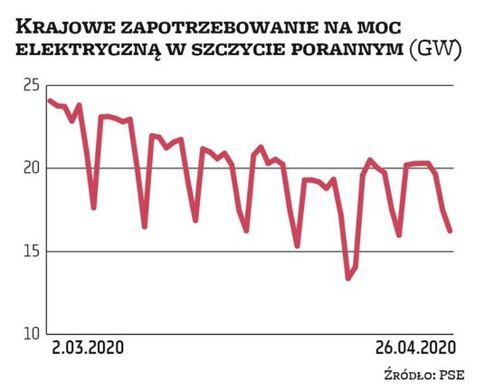 Nic tak wyraźnie nie pokazuje w czasie rzeczywistym aktywności gospodarki, jak poziom zapotrzebowania na energię elektryczną. Zanim napłynęły pierwsze dane o produkcji czy zatrudnieniu, mogliśmy z dnia na dzień obserwować, jak spada zużycie prądu w ślad za wprowadzaniem kolejnych obostrzeń związanych z funkcjonowaniem kraju w dobie pandemii. Wciąż nie wiemy, jak długo potrwa walka z koronawirusem, ale już teraz widzimy zawirowania na rynku energii. Elektrownie pracują przy wykorzytaniu mniejszych mocy i tną zamówienia na węgiel, a ceny energii i uprawnień do emisji CO2 lecą w dół. To wszystko musi odbić się na wynikach firm energetycznych i węglowych.