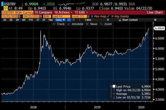 Jeszcze 4 kwietnia analitycy ustalali godziwą wartość tureckiej liry na 6,30 za dolara, podwyższając ją z 5,50 w obawie przed jej osłabieniem w związku z pandemią koronawirusa. Teraz podwyższają ją do 7 lir za dolara. Warunkiem utrzymania tej prognozy jest stabilizacja liry poprzez podwyższenie stóp procentowych. Od początku roku lira osłabła wobec dolara o 16 proc., a wobec euro „tylko" o 12 proc.