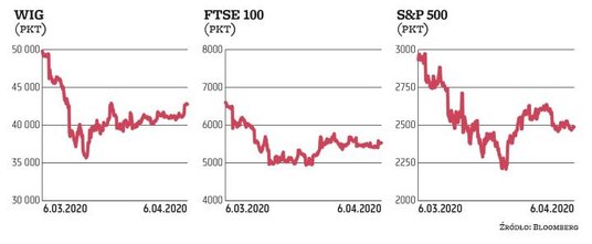 Na globalnych giełdach czuć było w poniedziałek optymizm. Dane wskazujące na wolniejszą liczbę zachorowań na Covid-19 we Włoszech, Hiszpanii i Nowym Jorku dały inwestorom nadzieję, że pandemię koronawirusa da się opanować. Pod znakiem zwyżek upłynęła więc poniedziałkowa sesja w Azji. Japoński indeks Nikkei 225 wzrósł o 4,2 proc., a koreański KOSPI o 3,96 proc. Optymizmem szybko zaraziła się Europa. WIG20 rósł po południu o ponad 4 proc., włoski FTSE MIB o 3,5 proc., a niemiecki DAX o prawie 5 proc. Grecki Athex Composite zyskiwał aż ponad 7 proc. Sesja w USA zaczęła się od zwyżek. Dow Jones Industrial rósł o ponad 4 proc. Czy ten optymizm ma jednak realne podstawy?