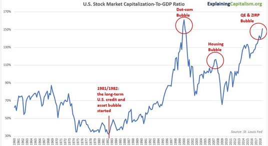 Tymczasem stosunek rynkowej kapitalizacji Wall Street do PKB Stanów Zjednoczonych wciąż rośnie i przekracza obecnie 150 proc. Patrząc na nabrzmiewanie tej bańki na tle poprzednich można się spodziewać gwałtownego spadku – jak to miało miejsce po bańce internetowej lat 1995-2001 i bańce na rynku nieruchomości, która pękła w 2008 roku. Oczywiście nie sposób przewidzieć, kiedy to nastąpi.