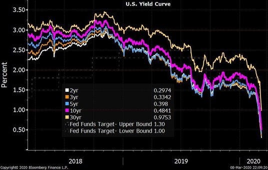 Obligacje USA mają rentowności najniższe w historii. W piątek spadek papierów 10-letnich do poziomu 0,658 proc. uważano za szokujący. W poniedziałek rentowność tych obligacji sięgała nawet 0,4841 proc. Papiery dwuletnie miały rentowność na poziomie 0,2974. Te rekordy powodują z kolei rekordy cen: przy rentowności 0,9753 cena papierów 30-letnich wzrosła w ciągu miesiąca znacznie powyżej 10 proc. A wszystko spowodował koronawirus, który rozprzestrzenia się w USA i w Europie, podczas gdy w Chinach jakby nieco się uspokoił. Jakby, ponieważ jedno z tamtejszych laboratoriów twierdzi, że powstała kolejna odmiana wirusa, groźniejsza niż poprzednia. Jak na razie, nie potwierdziła tego WHO.