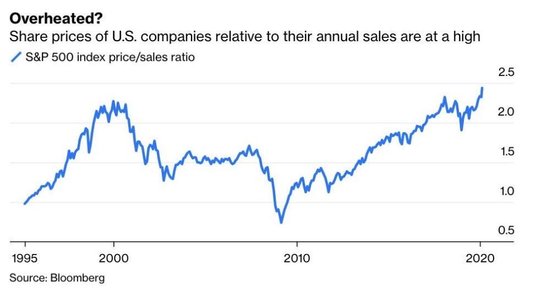 Na możliwość przegrzania nowojorskiej giełdy wskazują już niektóre wskaźniki. Na przykład stosunek ceny akcji do wartości rocznej sprzedaży, który znalazł się na poziomie najwyższym od 1995 roku.