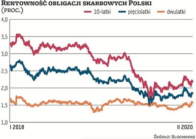 Co dalej? Ani hossa na globalnym rynku długu, ani bessa w Polsce, mogą nie być trwałe. – Globalny rynek jest obecnie spozycjonowany na rozszerzanie się epidemii koronawirusa, która będzie paraliżowała gospodarkę, a odpowiedzią będzie łagodzenie polityki pieniężnej przez banki centralne. Nie mam przekonania, że to jest właściwe nastawienie. Wiosną może się okazać, że epidemia koronawirusa wygasa, a impulsy banków centralnych zaczynają działać. Wtedy na rynkach wróci apetyt na ryzyko. Oczywiście, dane za I kwartał będą słabe. Ale jeden słaby kwartał nie daje powodów, aby rozgrywać na rynku obligacji scenariusz końca świata – ocenia Błażej Wajszczuk, starszy diler obligacji w BNP Paribas Bank Polska. – W Polsce zanosi się z kolei na słabnięcie wzrostu gospodarczego. To sugeruje, że dalszego wzrostu rentowności nie będzie, raczej wróci tendencja spadkowa. Z drugiej strony, wiele będzie zależało od inflacji. Większość ekonomistów oczekuje, że inflacja zacznie wiosną opadać – dodaje, chociaż zastrzega, że sam nie ma co do tego przekonania.