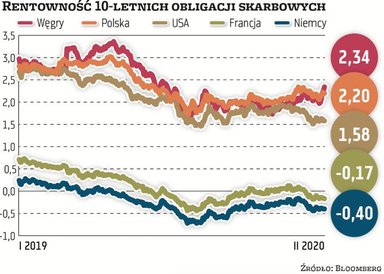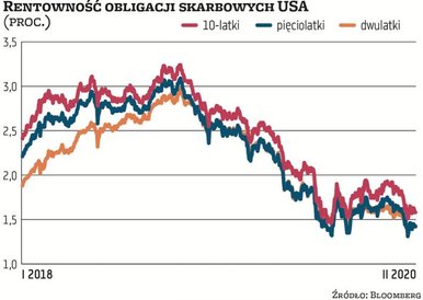 Na przełomie lat 2019 i 2020 rynki finansowe żyły coraz liczniejszymi sygnałami ożywienia w światowej gospodarce oraz pierwszą fazą porozumienia handlowego między USA a Chinami. To zahamowało wzrosty cen (spadki rentowności) obligacji skarbowych, utrzymujące się przez większą część 2019 r. Do najbardziej spektakularnych przejawów tej dłużnej hossy należał spadek rentowności 10-latek Hiszpanii z ponad 1,4 proc. na początku ub.r. do niespełna 0,2 proc. we wrześniu. W Polsce skala spadku rentowności była niewiele mniejsza. Jeszcze miesiąc temu wydawało się, że to już przeszłość. Tymczasem od połowy stycznia rentowności znów spadają, a na wielu rynkach znalazły się na nowych wieloletnich minimach. Tak stało się m.in. w Grecji i Rumunii. Także w USA niewiele brakuje do historycznych dołków.