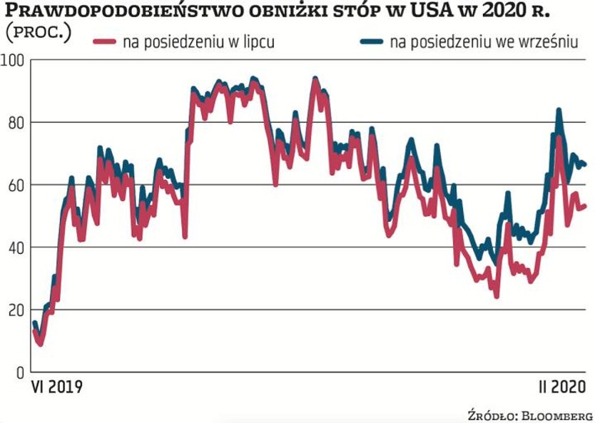 Notowania kontraktów terminowych na główną stopę Fedu sugerują, że w ocenie inwestorów ich obniżki w tym roku są w zasadzie przesądzone. W strefie euro, gdzie na dalsze łagodzenie polityki pieniężnej na pozór nie ma miejsca, ostatnie posiedzenie Rady Prezesów EBC zostało zaś uznane za „gołębie".