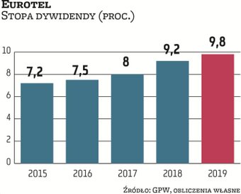 Przyjrzeliśmy się spółkom, które w ostatnich pięciu latach co roku dzieliły się zyskiem z akcjonariuszami. Okazuje się, że trzymając się strategii „kup i trzymaj", z samej tylko dywidendy można było wyciągnąć nawet kilkadziesiąt procent zysku – licząc w odniesieniu do zainwestowanej kwoty. Najbardziej hojny w ostatnich latach był Eurotel. Kto pięć lat temu kupił akcje spółki prowadzącej sklepy z usługami sieci komórkowych i produktami Apple'a, tylko dzięki dywidendzie zarobił 54 proc. Co istotne, w ostatnich kilku latach stopa dywidendy w tej spółce systematycznie rosła. Niewiele mniej, bo 46 proc. zysku, przyniosły dywidendy wypłacone przez Grupę Kęty. Spółka ta na tle innych podmiotów wyróżnia się stabilnością i przewidywalnością wyników finansowych. Prowadzi otwartą polityką informacyjną i regularnie publikuje roczne prognozy finansowe. Z hojności dla akcjonariuszy znane jest Asseco Business Solutions. Poprawiające się zyski i dobra kondycja finansowa informatycznej firmy przełożyły się w ostatnich latach na rosnące wskaźniki wypłaty. Dzięki nim posiadacze jej akcji wypracowali 44 proc. zysku. Do sowitych wypłat w ostatnich latach przyzwyczaił inwestorów Dom Development. Deweloper z reguły przeznaczał na dywidendę cały wypracowany zysk, co miało przełożenie na atrakcyjną stopę dywidendy. W efekcie w ciągu pięciu lat można było na samej dywidendzie osiągnąć około 40 proc. zwrotu z zainwestowanego kapitału. Ponad 30 proc. zarobili posiadacze z regularnej dywidendy wypłacanej także przez Budimex, Śnieżkę i AC.