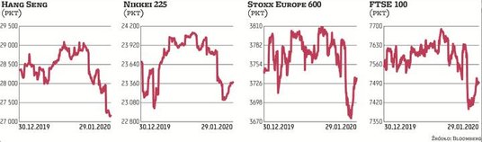 Silna wyprzedaż była jednak w środę ograniczona do giełdy w Hongkongu. Większość azjatyckich indeksów giełdowych lekko zyskiwała. Japoński Nikkei 225 zyskał 0,7 proc., a indyjski Sensex 0,6 proc. Również w Europie na znacznej większości giełd było „zielono". Niemiecki DAX rósł po południu o 0,2 proc., a francuski CAC 40 o 0,4 proc. Obawy przed rozprzestrzenianiem się koronawirusa ustąpiły optymizmowi związanemu m.in. z dobrymi wynikami amerykańskiego koncernu Apple.