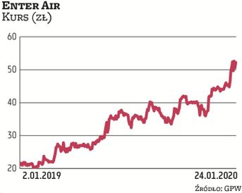 Mimo ponad 150-proc. zwyżki notowań w ciągu ostatnich 12 miesięcy eksperci wciąż dostrzegają potencjał w akcjach Enter Air. Przewoźnik ma za sobą udany sezon, który znalazł potwierdzenie w rosnących przychodach i zyskach. Wpływ na to miał wzrost rynku turystycznego w Polsce będący efektem poprawy sytuacji konsumentów. – Pozytywnie oceniamy strategię Enter Air jako niskokosztowego przewoźnika czarterowego. Obecnie spółka korzysta ze znacznego wzrostu popytu na przewozy czarterowe w kraju i za granicą. Równocześnie firma dostrzega ograniczenie podaży przewozów z uwagi na bankructwa europejskich konkurentów (Small Planets, Thomas Cook) oraz problemy linii lotniczych z samolotami Boeing 737 MAX – wskazuje Krajczewski. Pozytywnie również ocenia dokonane w I połowie 2019 r. przejęcie szwajcarskiej linii lotniczej od Germania Flug, która jego zdaniem pozwoli Enter Air na znaczne zwiększenie skali operacji poza Polską.