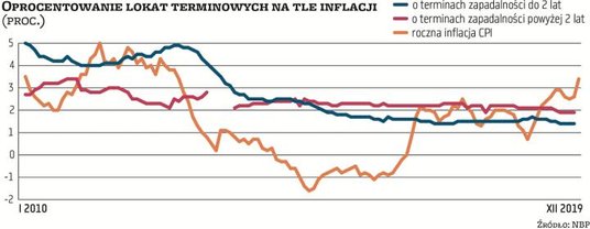 Roczne lokaty w bankach, zawierane w grudniu 2018 r., były przeciętnie oprocentowane na około 1,6 proc. Od tego czasu indeks cen konsumpcyjnych, podstawowa miara inflacji w Polsce, wzrósł o 3,4 proc. rok do roku. To oznacza, że realne oprocentowanie takich lokat wyniosło około minus 1,8 proc. w skali roku. Tak liczona realna stopa procentowa w Polsce jest ujemna niemal nieprzerwanie od marca 2017 r., ale tak nisko nie była jeszcze nigdy. A w kolejnych miesiącach wedle wszelkiego prawdopodobieństwa spadnie jeszcze bardziej, bo inflacja – jak przeciętnie prognozują ekonomiści – w I kwartale br. przewyższy 4 proc.