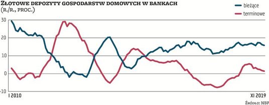 Na pierwszy rzut oka obawy nie są uzasadnione. Choć realne oprocentowanie depozytów jest poniżej zera już od niemal trzech lat, ich wartość rośnie w ekspresowym tempie. Z danych NBP wynika, że w listopadzie w bankach na złotowych rachunkach bieżących i terminowych gospodarstw domowych znajdowało się 803 mld zł, o ponad 10 proc. więcej niż rok wcześniej. Depozyty przyrastają w dwucyfrowym tempie od grudnia 2018 r.