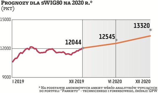 Poprosiliśmy analityków, którzy typują spółki do naszych portfeli – technicznego i foreksowego – by wskazali, na jakich poziomach znajdą się indeksy WIG20, mWIG40 i sWIG80 na koniec pierwszego półrocza 2020 r. i po 12 miesiącach. Z ich wskazań wynika, że czeka nas rok spod znaku byka. Wprawdzie wielkiej hossy nikt nie przewiduje, ale stopy zwrotu powinny być przynajmniej kilka razy wyższe niż te z bankowych lokat.