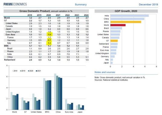 W komentarzu do swojego wpisu Lacalle podkreślił, że kraje strefy euro pozostaną jednym z najgorszych regionów na świecie. Co więcej, Niemcy i Włochy nie osiągną w 2020 r. wzrostu przekraczającego 1 proc. (prognoza dla całej strefy euro to właśnie 1 proc.). W kolejnych latach ma być jednak lepiej – zarówno w Europie, jak i na całym świecie.