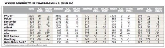 Najmocniej zysk netto przez rok poprawiły: Santander (24 proc.), mBank (22 proc.), PKO BP (18 proc.) i ING BSK (10 proc.). Spore spadki zanotowały Alior i Handlowy (po około 28 proc.), dla których był to drugi słaby kwartał z rzędu. Jedynym bankiem ze stratą jest Getin Noble. Może ona wynieść 74 mln zł w porównaniu z 14 mln zł pod kreską rok temu i 89 mln zł w II kwartale (szacunek ten może być obarczony sporym błędem, bo dużo zależy od wielkości rezerw).