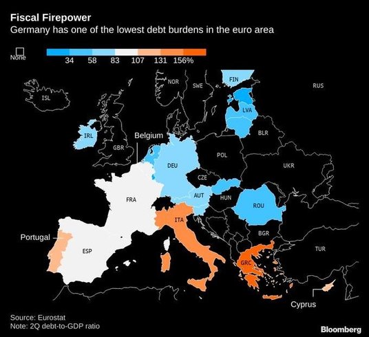 To, jak dokładnie wygląda aktualna sytuacja w poszczególnych krajach, w których płaci się wspólną europejską walutą, możemy zobaczyć na grafice przygotowanej przez Bloomberga.