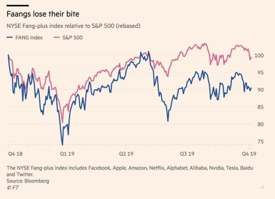 Indeks FANG plus skupia 10 innowacyjnych spółek technologicznych notowanych na nowojorskiej giełdzie. W jego skład wchodzą: Facebook, Apple, Amazon, Netflix, Google (Alphabet), Alibaba, Nvidia, Tesla, Baidu i Twitter. Przez ostatnie lata hossy na rynku akcji w Stanach Zjednoczonych największe spółki technologiczne były gwiazdami giełdowego parkietu i większość z nich mogła się pochwalić wzrostami akcji znacznie bardziej dynamicznymi, niż było to w przypadku szerokiego rynku.