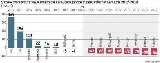 Potwierdzają to choćby niedawno ogłoszone wezwania na Stelmet i Ceramikę Nową Galę, które mogą przynieść ich mniejszościowym akcjonariuszom trzymającym akcje od debiutu po około 75 proc. straty. Słabo wypadły też m.in. takie długoterminowe inwestycje, jak Gino Rossi (-95 proc.), Avia Solutions (-70 proc.) czy InPost (-62 proc.).