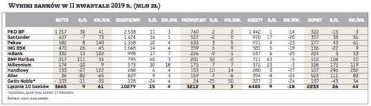 Sezon publikacji przez banki wyników za II kwartał już prawie za nami. Dziesięć największych banków z GPW zanotowało w tym okresie łącznie 3,67 mld zł zysku netto. Uwzględniliśmy prognozowane wyniki Getin Noble Banku, który opublikuje raport dopiero 27 września.