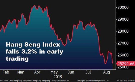 Oczywiście taka sytuacja nadal negatywnie odbija się na tamtejszym rynku akcji. Główny indeks giełdy w Hongkongu, czyli Hang Seng, rozpoczął tydzień od spadku o 3,2 proc. W dalszej części dnia było niewiele lepiej i skala przeceny utrzymywała się w okolicach 3 proc. Z kolei wartość indeksu Hang Seng przez ostatni miesiąc skurczyła się o ponad 10 proc.