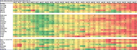 Tomasz Smolarek z Noble Funds TFI zwrócił uwagę m.in. na serię spadków globalnego PMI trwającą 14 miesięcy (najdłużej od 20 lat). Dodatkowo światowy indeks jest najniżej od października 2012 r. Jak dodał, tym razem spadki napędzała Azja. W eurolandzie obyło się bez większej zmiany patrząc łącznie (Francja, Niemcy w górę, a Włochy i szczególnie Hiszpania mocno w dół).