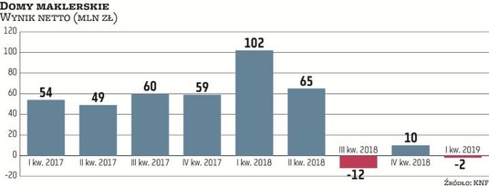 Szerokim echem w ostatnim czasie odbiły się także zbiorcze dane domów maklerskich, które cyklicznie publikuje Komisja Nadzoru Finansowego. Branża tradycyjnie już na działalności podstawowej poniosła stratę w I kwartale, ale – co zaskakujące – to fakt, że całkowity wynik netto był na minusie. Strata domów maklerskich w I kwartale wyniosła 1,7 mln zł. Rok temu brokerzy wykazali zysk, który wyniósł ponad 102 mln zł. Na tę sytuację złożyło się kilka czynników. To oczywiście słabość rynku giełdowego, ale także i efekt zmian, jakie zaszły na rynku forex.