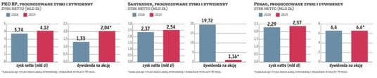 Znacznie mniej skomplikowanym przypadkiem z mniejszą liczbą niewiadomych jest Pekao, który przez lata słynął, jako jedyny obok Banku Handlowego, ze zdolności do wypłaty całości zysku. Nie ma już jednak tak dużej nadwyżki kapitałowej, skonsumowanej przez wzrost wymogów w tym zakresie, i parę miesięcy temu musiał przyjąć nową strategię. Przewiduje, że z zysku 2019 r. na dywidendę trafić ma 60–80 proc., w kolejnym zaś 50–75 proc. zysku za 2020 r. Według średniej prognoz Bloomberga Pekao ma zarobić w tym roku o 4 proc. więcej niż wcześniej, czyli 2,37 mld zł. Zakładając, że jednostkowy zysk będzie zbliżony, tak jak w poprzednich latach, na akcję może przypaść 6,6 zł (przy założeniu najbardziej prawdopodobnego 75-proc. wskaźnika wypłaty). Dałoby to solidną stopę dywidendy w wysokości 6,2 proc.