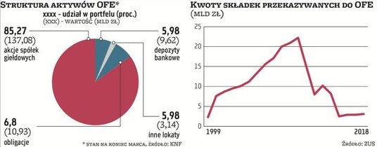 Szybko okazało się, że rząd chce mieć udziały z tej prywatyzacji. Od pieniędzy przenoszonych na IKE pobierze więc 15-proc. opłatę, w dwóch ratach: w 2020 r. i 2021 r. Opłata trafi do budżetu państwa. W ocenie skutków regulacji dołączonej do projektu ustawy w sprawie likwidacji OFE rząd szacuje, że na przeniesienie pieniędzy na IKE zdecyduje się 80 proc. członków otwartych funduszy emerytalnych. Zapłacą za to rządowi 8,6 mld zł w 2020 r. i 8,4 mld zł w 2021 r. W sumie więc prowizja, którą państwo pobierze za przeniesienie pieniędzy z OFE na IKE, sięgnie 17 mld zł.