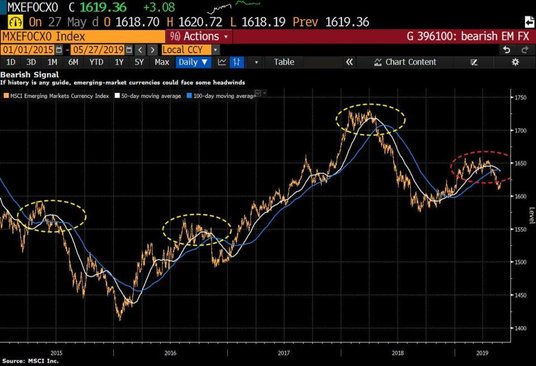 Daniel Lacalle, ekonomista i wykładowca m.in. IE Business School, niepokoi się o waluty rynków wschodzących i zauważa ryzyko poważniejszej korekty. Powody? Niepokojące sygnały dotyczące wzrostu gospodarczego, inflacji i sytuacji na rynku surowców. Sytuacja techniczna MSCI Emerging Markets Currency Index także nie należy do najlepszej.