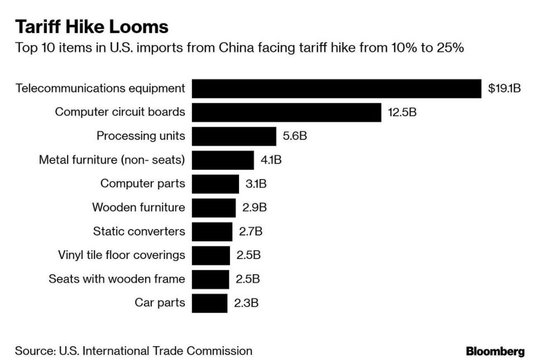 Potwierdziła się informacja, którą od początku tygodnia żyli inwestorzy. Stany Zjednoczone podwyższyły w piątek cła na wybrane chińskie towary z 10 proc. do 25 proc. Na jakie eksportowe towary Państwa Środka podniesiono opłaty? To podsumował Bloomberg, a wyniki w mediach społecznościowych przedstawił dziennikarz zajmujący się Chinami – James Mayger. Są to przede wszystkim różnego rodzaju części elektroniczne i komputerowe. Na liście znajdują się także m.in. meble czy części samochodowe.