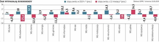 Dwa wskazania od ekspertów otrzymał subindeks WIG-banki. – W odniesieniu do analizy sektorowej potencjał wzrostowy widzimy w segmencie banków. Łączny zysk sektora (z oddziałami zagranicznymi), według obliczeń KNF, wzrósł w ujęciu rocznym o 7,5 proc. Jak wynika z danych, głównym źródłem był wzrost wyniku odsetkowego, obniżenie odpisów z tytułu utraty wartości kredytów oraz niższe tempo wzrostu kosztów administracyjnych banków. Z kolei ujemny wpływ miał niższy wynik z tytułu opłat i prowizji. Oczekujemy, że pozytywne tendencje ogółem wyników finansowych będą kontynuowane w 2019 r. – wyjaśnia Marcin Brendota, doradca inwestycyjny BM Alior Banku.