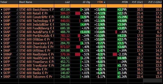 Alior TFI zaprezentowało zestawienie, w którym porównuje kondycję poszczególnych sektorów na europejskich rynkach akcji. Było to możliwe dzięki indeksom tworzonym przez firmę STOXX, która dostarcza inwestorom 19 indeksów sektorowych składających się z akcji notowanych na europejskich giełdach.