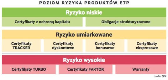 Inwestorzy z warszawskiej giełdy mają możliwość korzystania z ponad 1,1 tys. instrumentów ETP (Exchange Traded Products). Są to produkty strukturyzowane, czyli instrumenty finansowe, których cena jest uzależniona od wartości instrumentu bazowego (np. ceny akcji lub konkretnego surowca albo wartości wybranego indeksu).